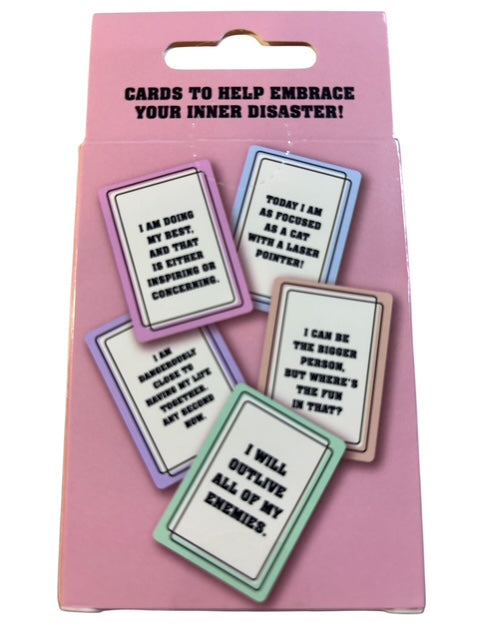 This Slightly Unhinged Affirmation Deck has different messages that embrace your inner disaster! Each deck includes 54 different messages for that "special" person.