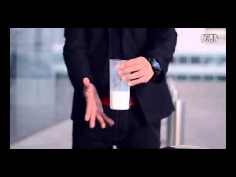 Magician shows a glass full of milk.