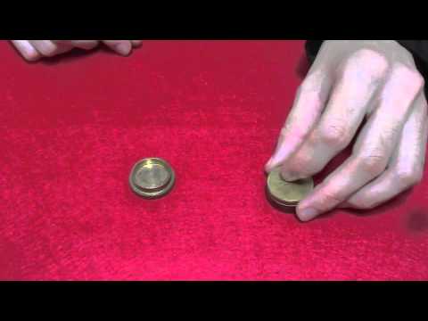 From an empty metal cap..... five coins appear. The stack of coins is covered with the cap..... and they jump to the second cap. The coins are placed onto one of the caps and covered with the other. They penetrate right through SOLID METAL and are found under the lower cap. The coins are enclosed between the two caps and are turned around..... the coins vanish without trace. Easy to do!