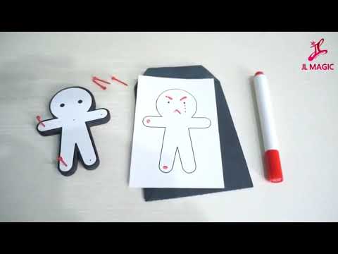 The Magician displays a Voodoo Doll and can even offer it for examination by the audience.  The Magician states he/she has made a prediction and placed it inside of an envelope.  In fact, it was just done moments before with the very pen on the table.  Now the spectator is asked to take the pins on the table and place them into the Voodoo Doll - feet, hands, or heart.  This is a totally free selection by the audience.  They may even change their mind if they desire to do so.  After their selection is complete, the Magician reveals his/her prediction in the envelope to be the exact same as the Voodoo Doll!